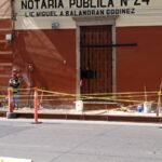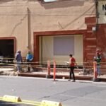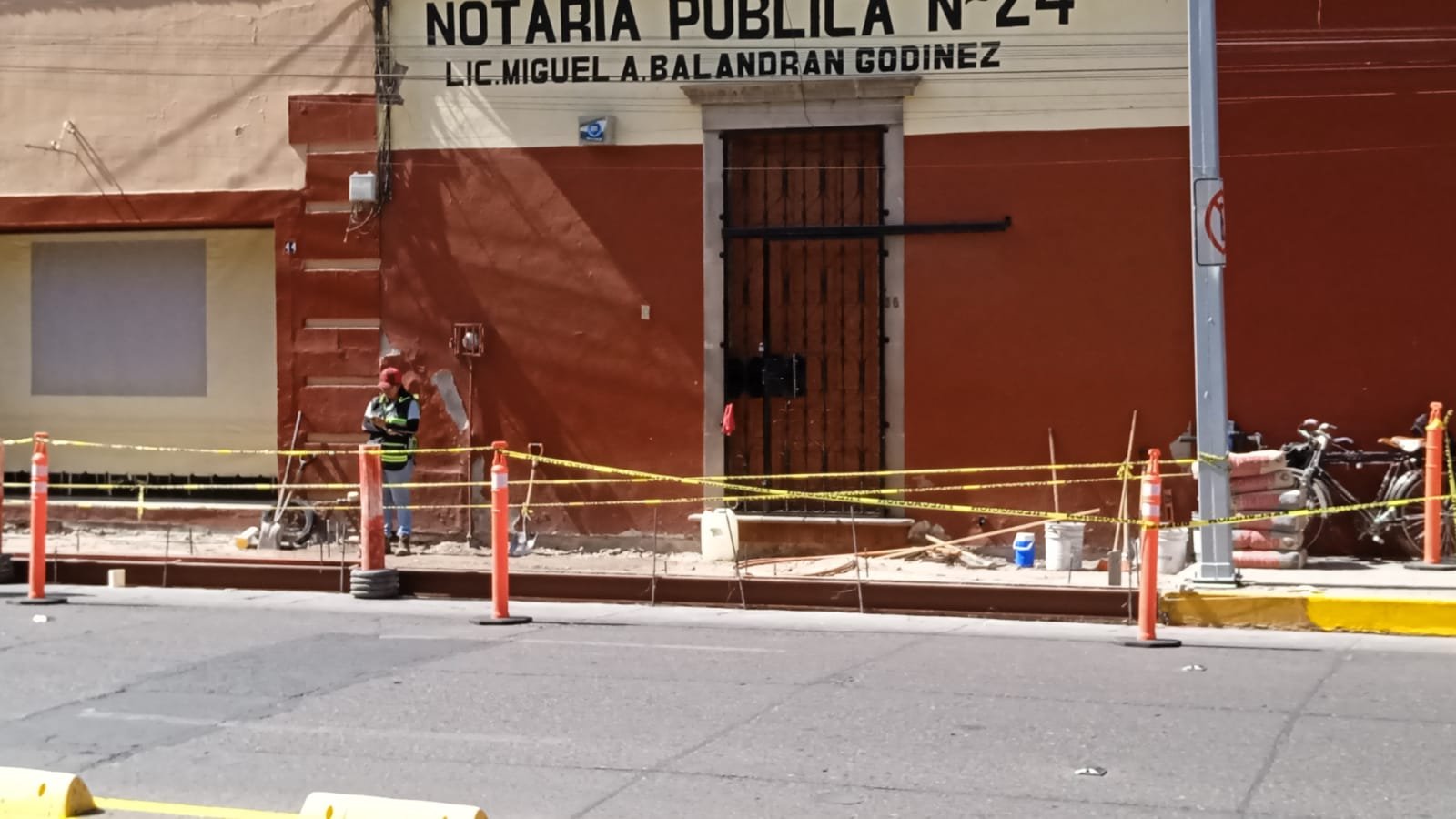 Autoridades municipales llevan a cabo la restauración de un tramo peatonal de la Zona Centro, justo afuera de la Casa de la Cultura.