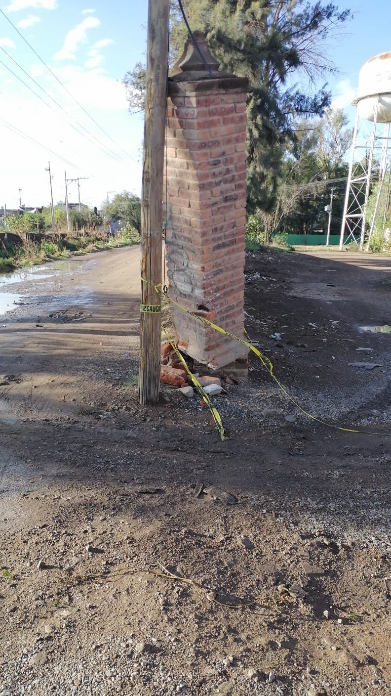 Vecinos del Fraccionamiento Los Fresnos, reportaron a T Informa acerca de un pilar, el cual representa un riesgo para la ciudadanía pues se encuentra apenas sostenido por un poste de madera.