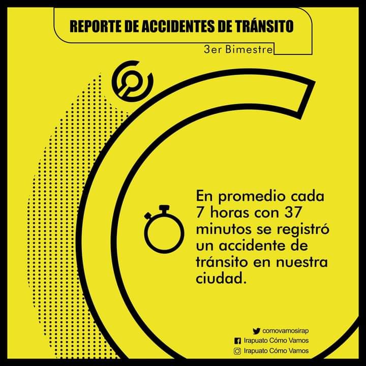 Tras el reporte compartido por el Observatorio Ciudadano Irapuato, ¿Cómo Vamos?, se destacó un aumento en el número de incidencias de tránsito, durante el tercer bimestre del presente año.