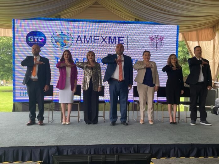Salamanca. – Ante representantes de gobierno del estado así como de presidentes de organizaciones empresariales de la región y estado, Rosario de la Vega Mayagoitia rindió protesta como presidenta de AMEXE capítulo Salamanca.