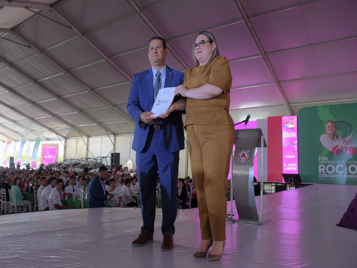 De esta manera, se llevó a cabo el evento de rendición del Segundo Informe de Gobierno de la Presidenta Municipal de Abasolo, Rocío Cervantes Barba, ante la presencia de miles de abasolenses, así como el pleno del H. Ayuntamiento, integrantes de la Administración Pública Municipal e invitados especiales.