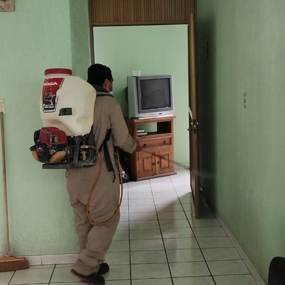 Posteriormente se aplican insecticidas con máquinas especiales enfocados en el rociado intradomiciliario y la termonebulización para finalmente cerrar con broche de oro y realizar la nebulización espacial en las calles de los municipios, eliminando a los moscos adultos.
