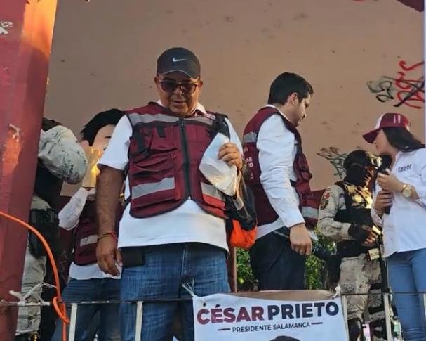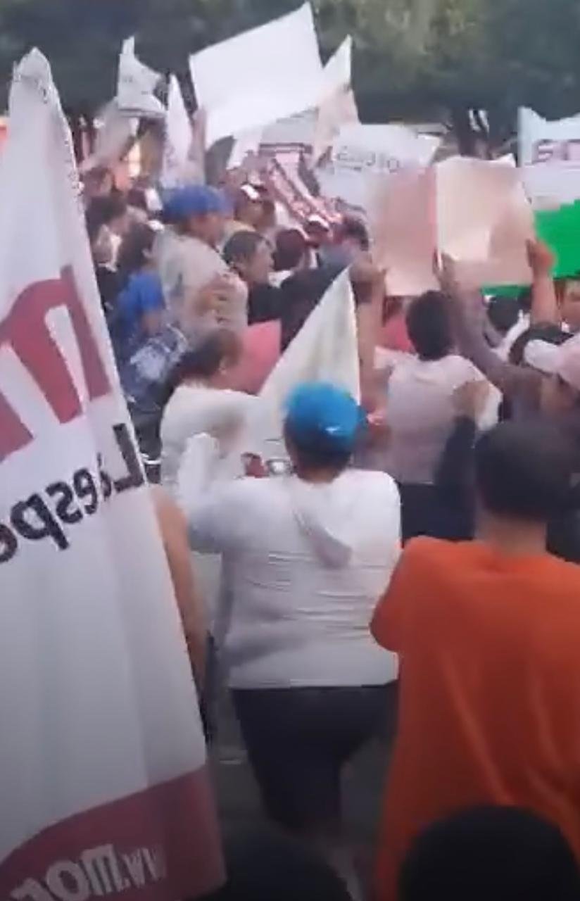 En el evento que sucedió la tarde del miércoles, fueron grabados los hechos y en los cuales aparece la imagen de al menos una funcionaria pública en funciones en el mitin político y entre los morenistas que “defendieron” al candidato César Prieto y llamaron panistas a los inconformes que traían cartulinas y una manta, los cuales fueron arrebatados por los seguidores de Prieto Gallardo.