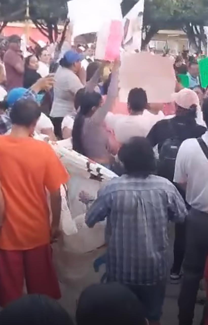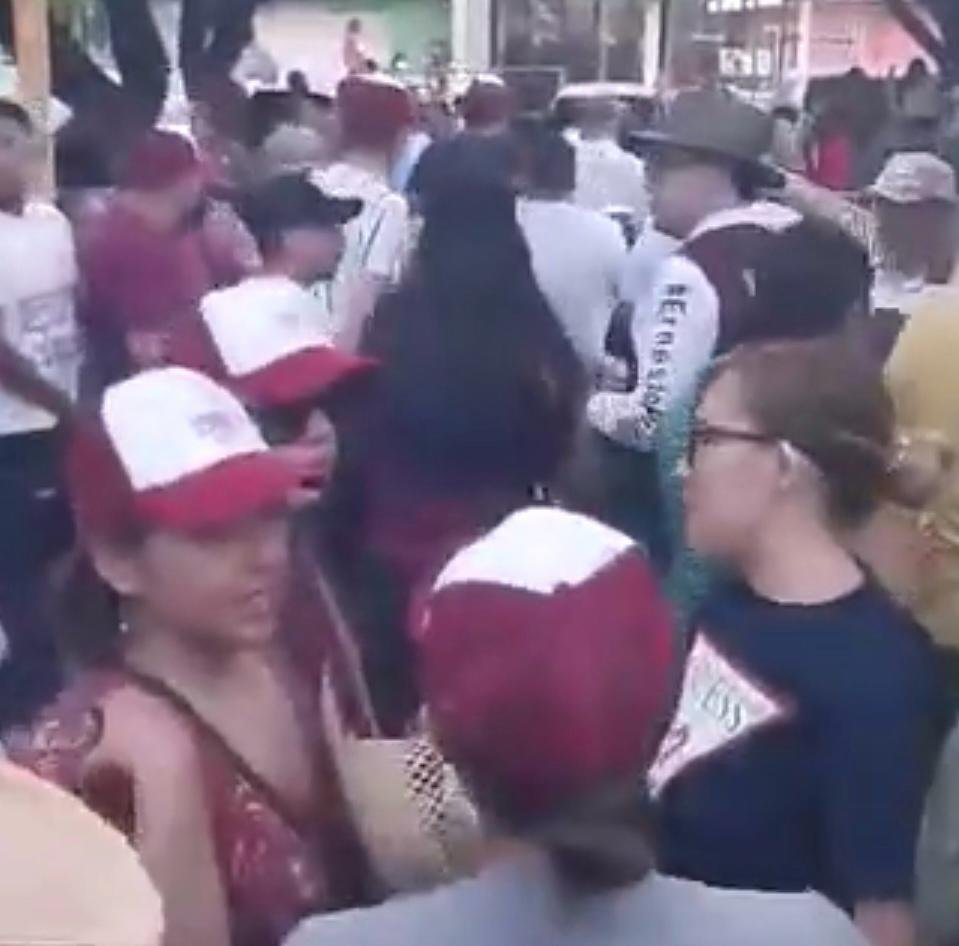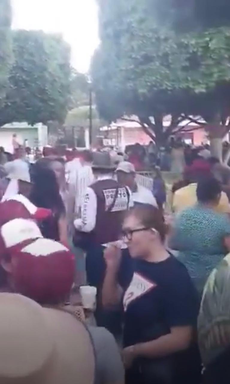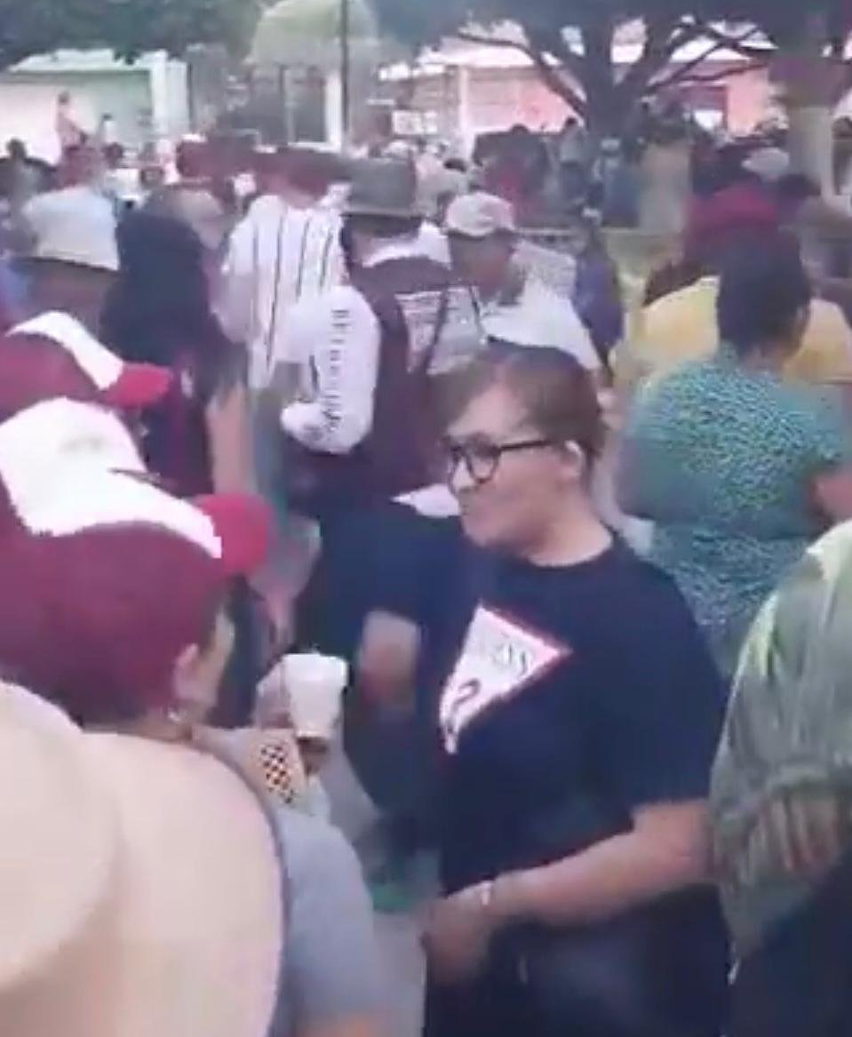 “Durante la visita del candidato Cesar Prieto,un grupo de personas planeaban hacerle saber sus inconformidades y el abandono en el que a dejado valtierrilla. Sin embargo, los «acarreados » de MORENA les impidieron el paso hasta el kiosko (lugar donde se encontraba) haciéndolos a un lado.