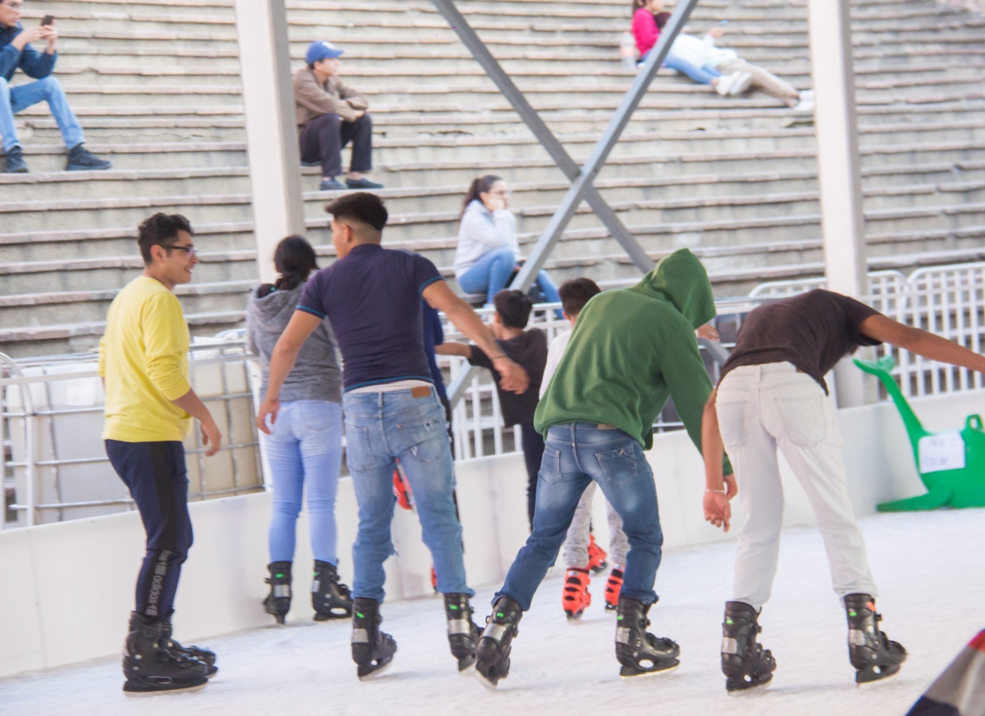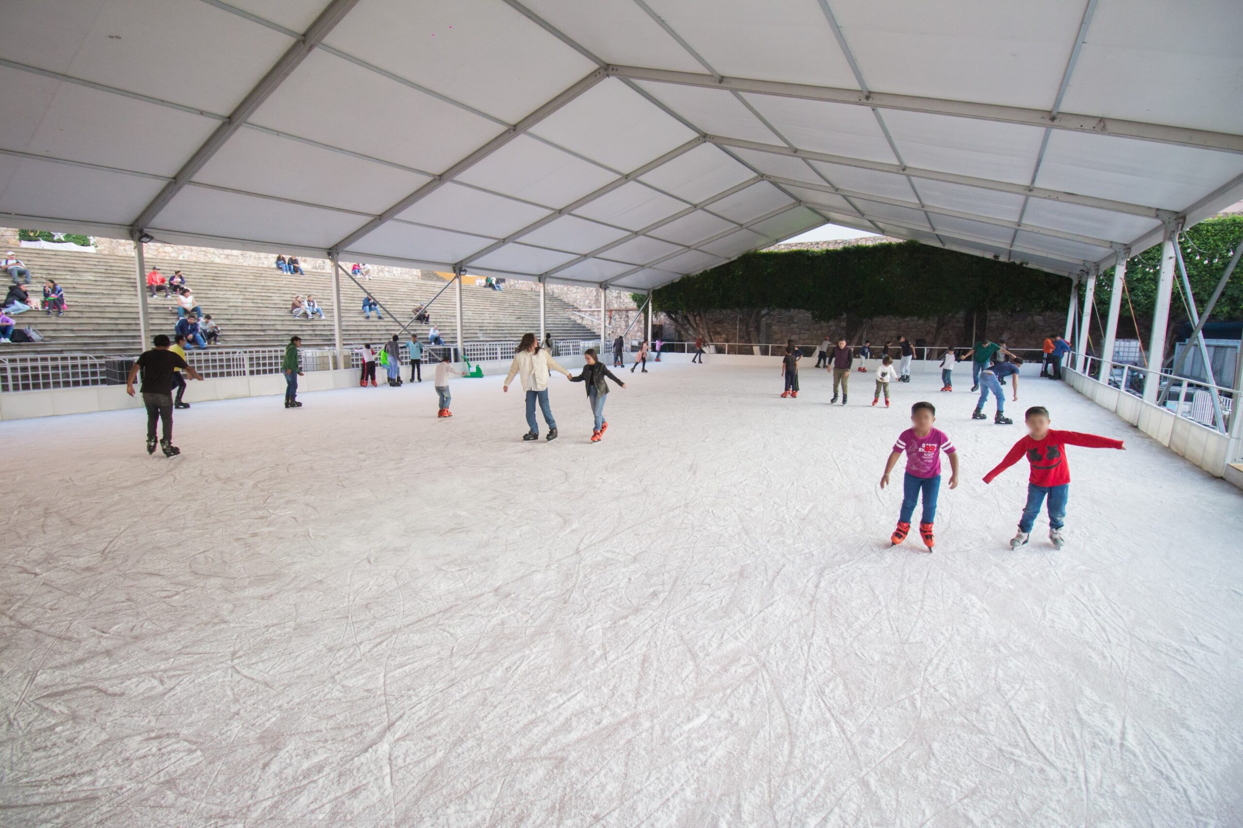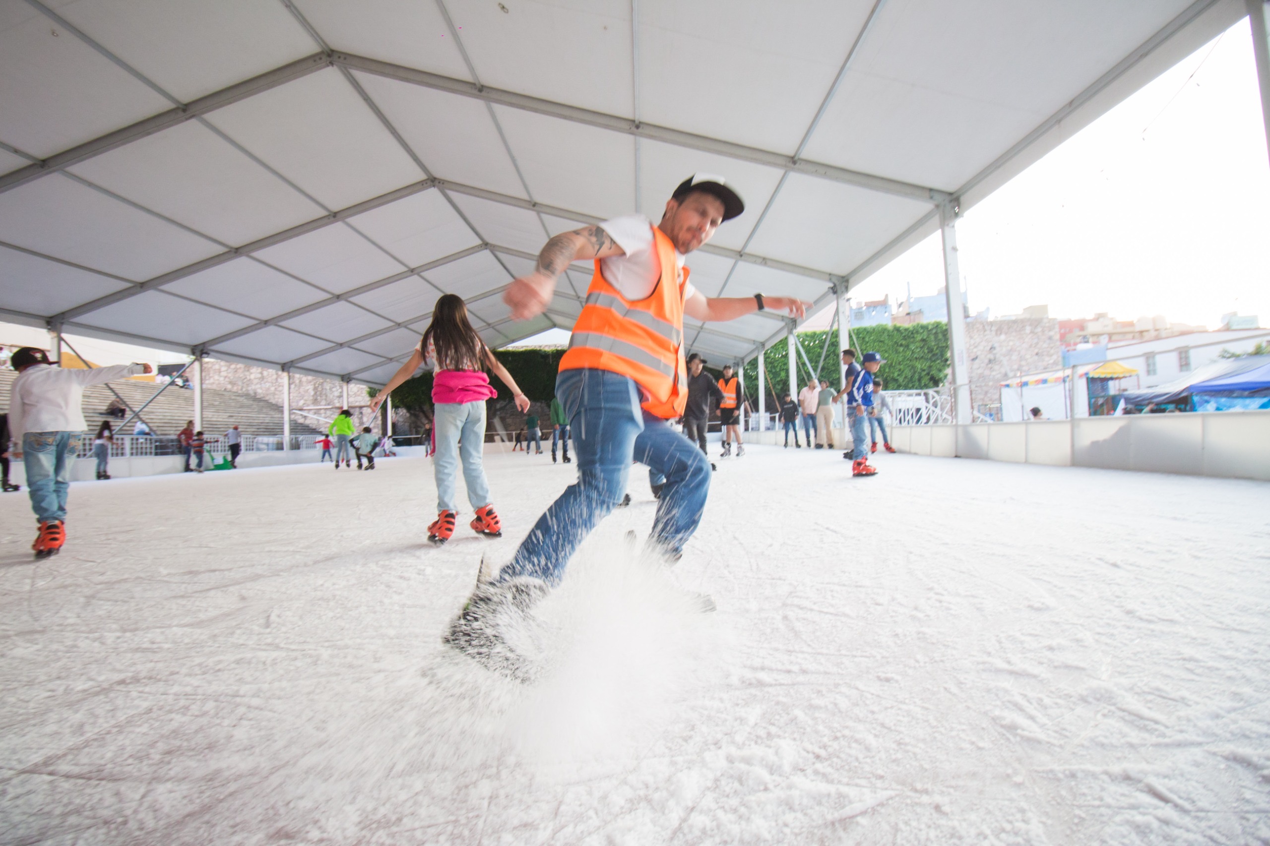 Instalada en la explanada de la icónica Alhóndiga de Granaditas, la pista de hielo abrió sus puertas a partir de esta semana, la penúltima de 2023, para promover la unión familiar, la amistad y la sana convivencia. Es un atractivo gratuito que nuevamente enriquece los festejos navideños y esta vez viene acompañada por una serie de juegos mecánicos, también gratuitos.