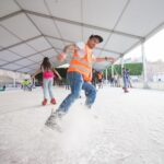 Guanajuato, Gto.; 21 de diciembre de 2023.- Cientos de familias guanajuatenses ya disfrutan del patinaje gratuito en la pista de hielo del festival navideño que ofrece Guanajuato Capital entre diciembre de 2023 y enero de 2024.