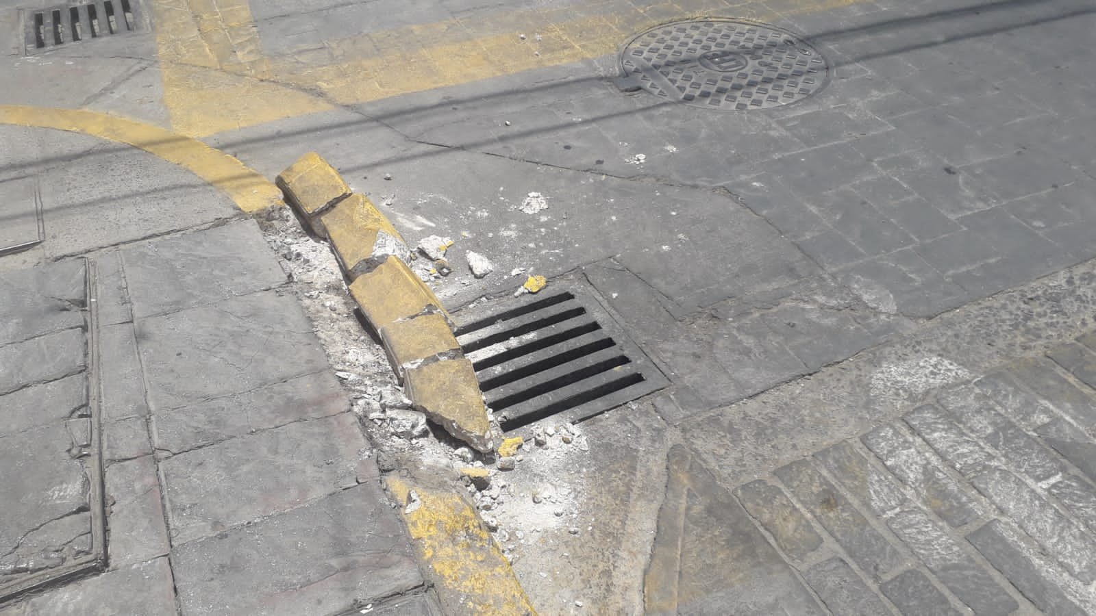 Asimismo, el incidente dejó el desprendimiento de una parte de la banqueta, pues según relataron algunos locatarios, choferes de más rutas y conductores pasaron por encima de ésta, terminando por romper una parte de la esquina.