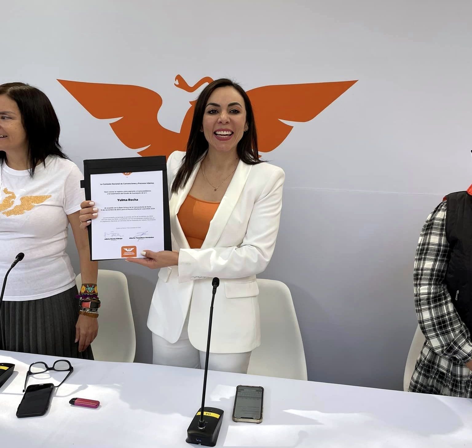 Yulma Rocha Aguilar, se registró este martes con Movimiento Ciudadano (MC), como precandidata a la gubernatura del estado de Guanajuato, para contender en el 2024 dentro de las elecciones.