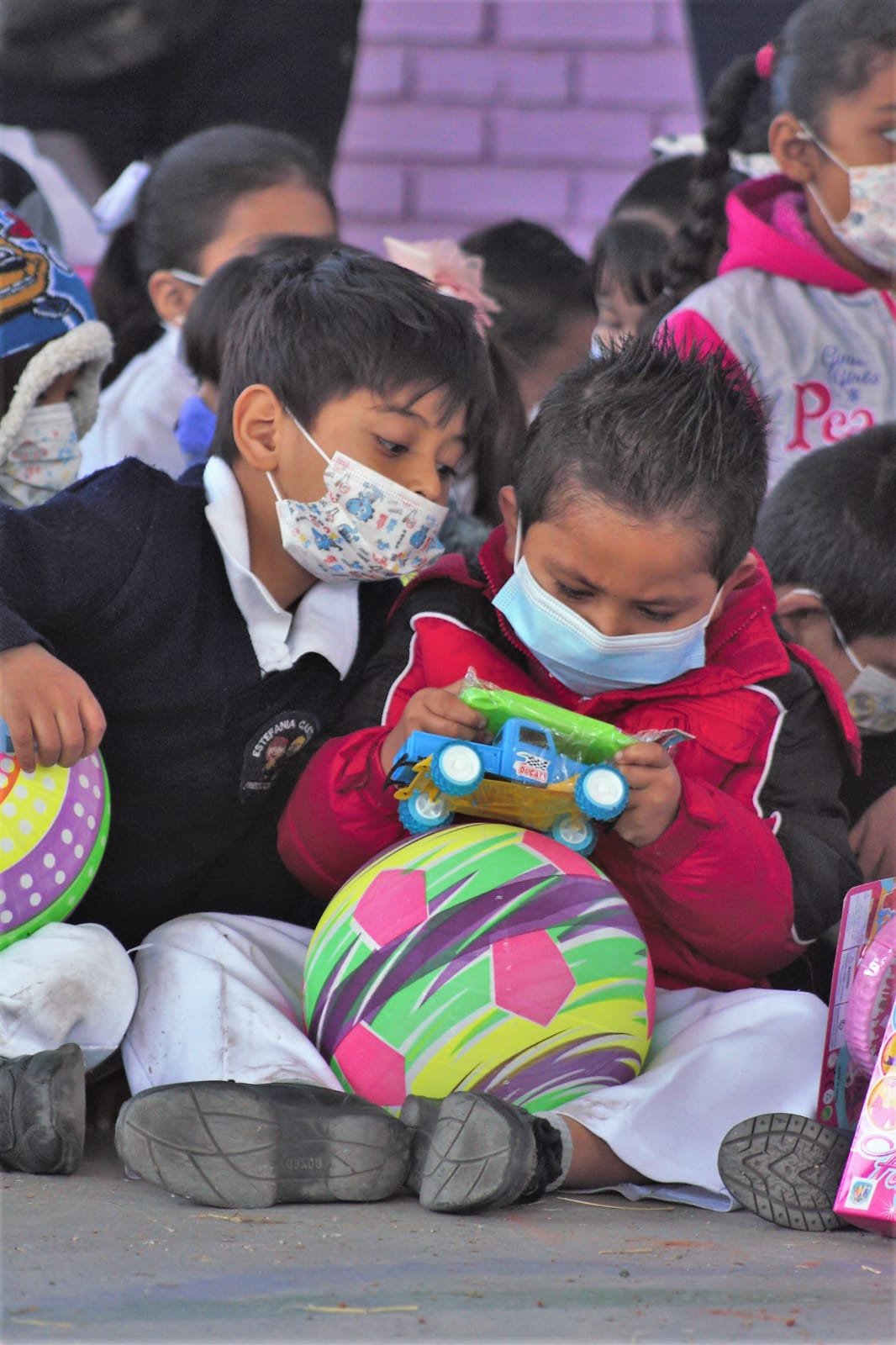“Es una satisfacción por ver a nuestras niñas y niños con esa sonrisa que se desprende al tener entre sus manos estos juguetes, así como el de apoyar a las familias con cobijas que fueron donadas por autoridades educativas y empresarios”, dijo la maestra Laura Lozoya Ponce, Jefa del Sector 17 de Preescolar.