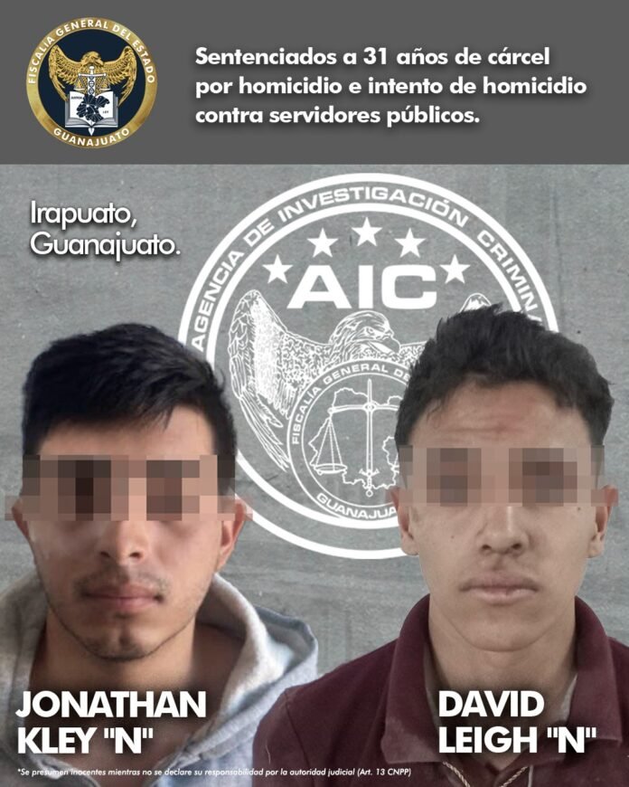 Irapuato, Gto. 07 de marzo de 2024.- Derivado de la agresión a elementos de corporaciones policiacas ocurrido el 19 de febrero de 2022, en la carretera que conecta a Irapuato con Pueblo Nuevo, dos sujetos han sido sentenciados a 31 años de cárcel.