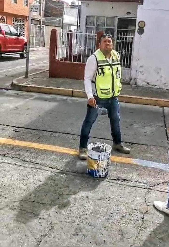 Adicional al gasto municipal, Jorge Guerra pagó el cambio de placas de su camioneta para personas con discapacidad y comentó que “Debido a que no tengo el suficiente dinero, usé una pequeña brocha y pinté de color amarillo, las líneas para delimitar frente a mi casa para estacionar o la ambulancia o la camioneta para contar con estacionamiento y movilizar a mi esposa, quien tiene estado de salud de cuidado, pero alguien reportó a validad y llegaron los elementos del municipio”.