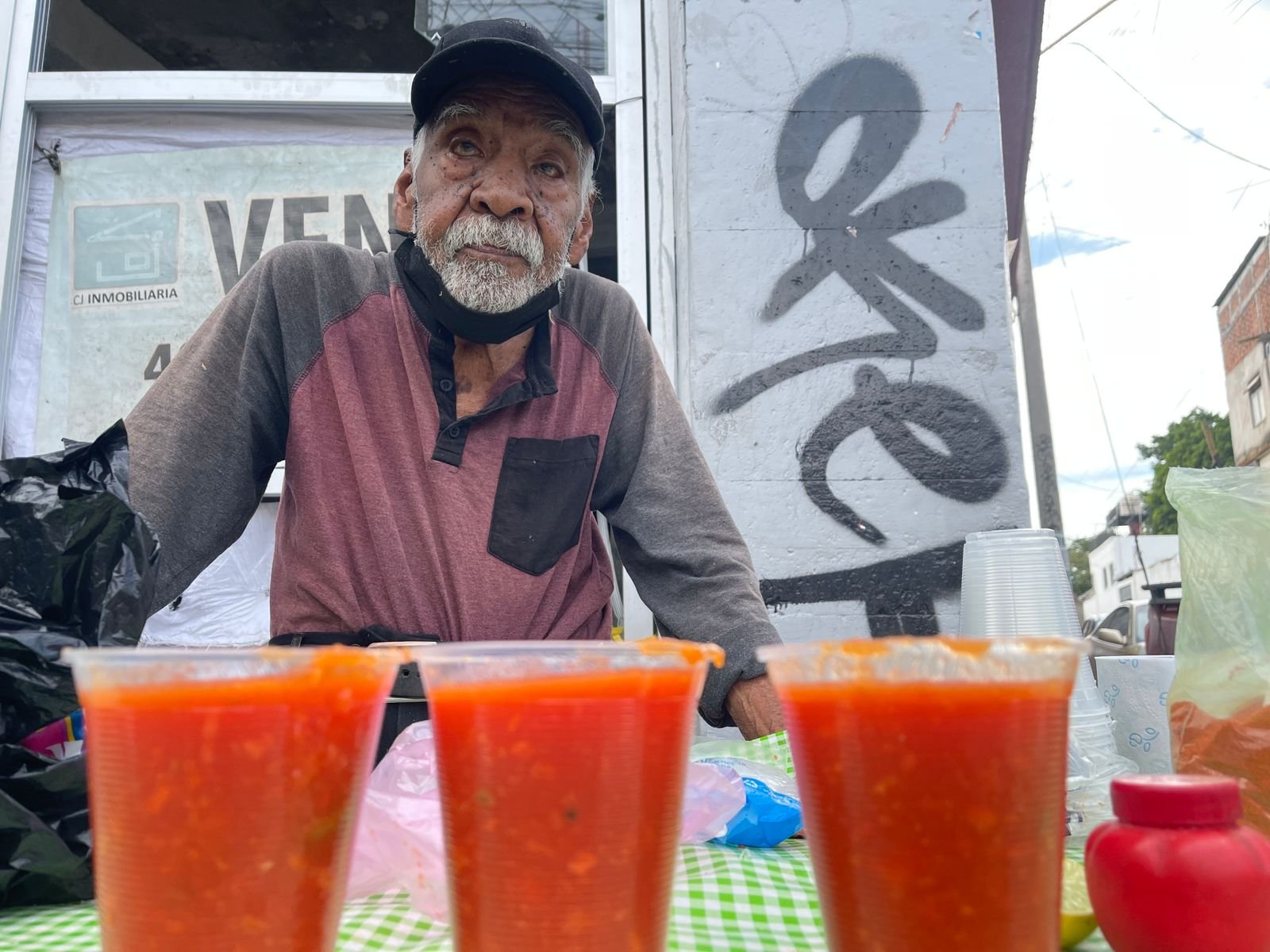 Antonio comenzó a vender papaya desde los 20 años en esa memorable esquina, y podemos decir que sin parar pues a sus más de 90 años continúa trabajando con exactamente la misma fruta, variando su presentación de vaso de fruta a agua, y ese conocido vas de pulpa de papayita con sal, limón y chile.