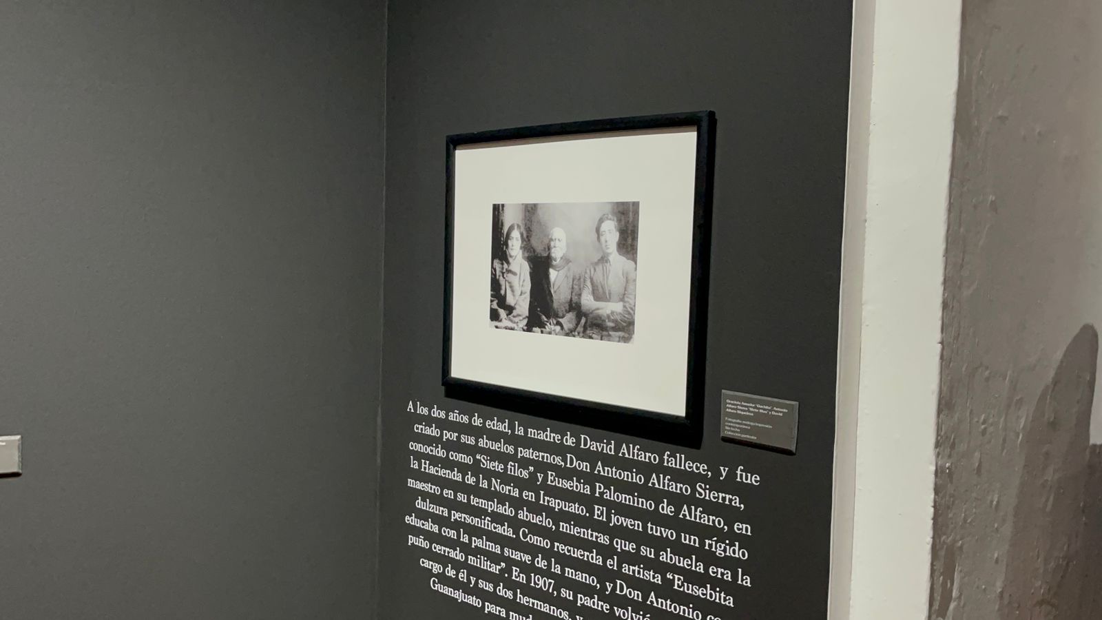 “Cuando Siqueiros tenía tan solo dos años de edad, muere su madre y pasa a ser criado por sus abuelos paternos, don Antonio Alfaro Sierra, conocido como ‘Siete Filos’ y Eusebia Palomino de Alfaro, en la Hacienda de la Noria en Irapuato”, relató.