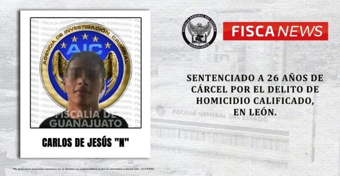 León, Gto., 26 de junio de 2023.- En audiencia de juicio oral, la Fiscalía de Guanajuato obtuvo una sentencia de 26 años de cárcel para CARLOS DE JESÚS “N”. Este sujeto fue encontrado culpable del delito de homicidio calificado en agravio de un joven de 18 años, cuyo cuerpo fue desmembrado y localizado en la colonia La Piscina, el 03 de diciembre de 2021.