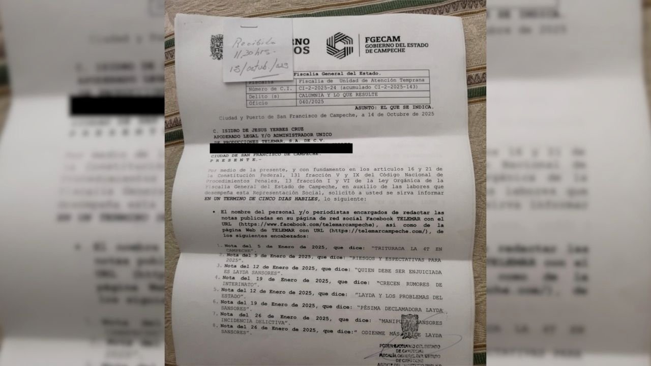 La empresa periodística Producciones Telemar, S.A. de C.V. denunció que la Fiscalía General del Estado de Campeche (FGECAM) busca obligarla a revelar los nombres de los autores de sus notas informativas, bajo amenaza de sanciones legales y económicas en caso de no hacerlo, después de haber hablado de la gobernadora Layda Sansores.
