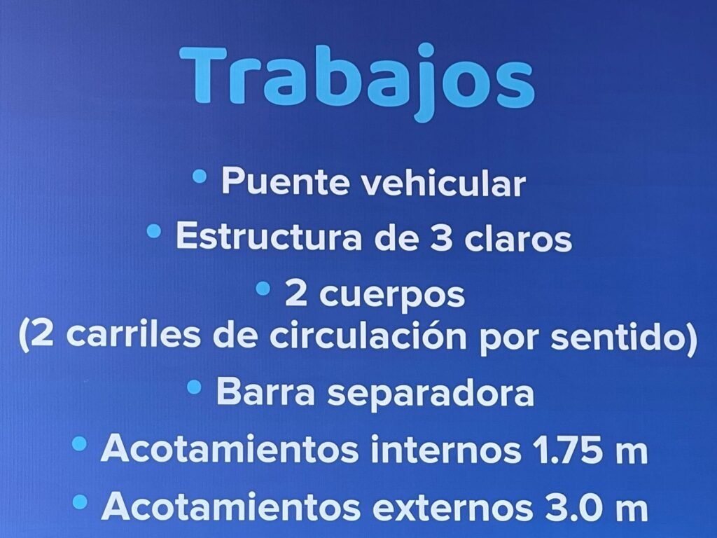 Según refirió Tarcisio Rodríguez Martínez, esta ejecución no se quedará únicamente en el puente, sino que además habrá calles laterales, y el tramo del puente tendrá 2 cuerpos para carril, barra separadora.
