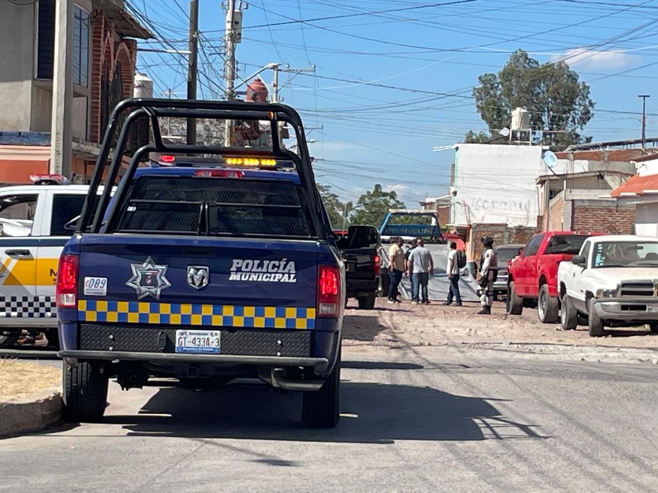 En la entrada de la colonia El Rocío, una patrulla de la policía municipal chocó contra un vehículo gris aparentemente no involucrado en lo que sucedía.
