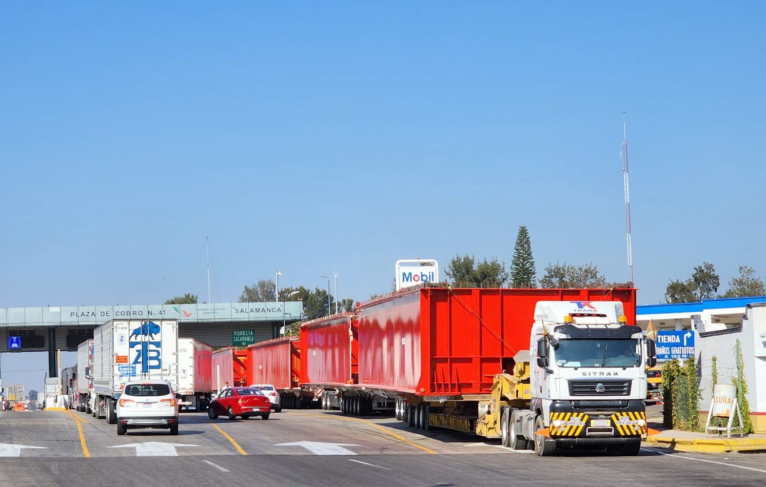 Primero, fue a través de grupos de la red social Facebook, y luego por medio de mensajes de WhatsApp, como usuarios de la carretera de cuota Irapuato-Querétaro, manifestaron su disgusto y alertaron a otros conductores sobre el tráfico de vehículos muy lento para quienes van de Salamanca a Celaya o Querétaro y finalmente, personal de conservación de Caminos y Puentes Federales, dijeron que se trata del traslado de pesados equipos que son llevados al sur del país para su uso en la construcción del Tren Maya.