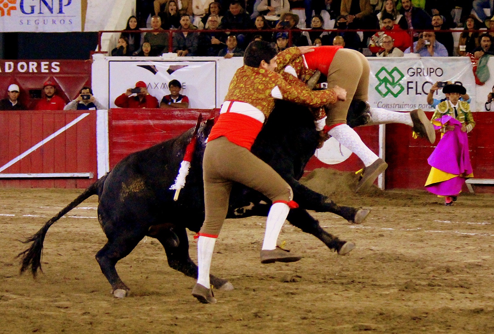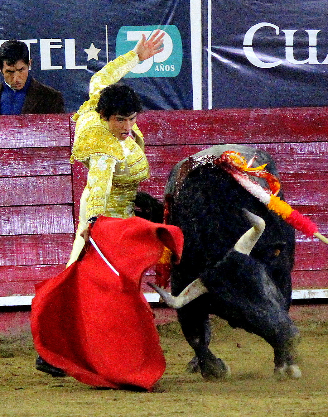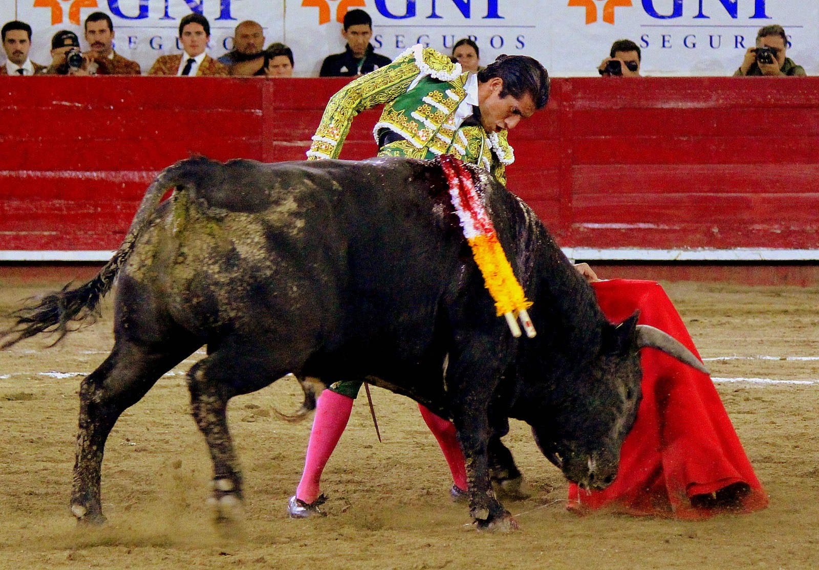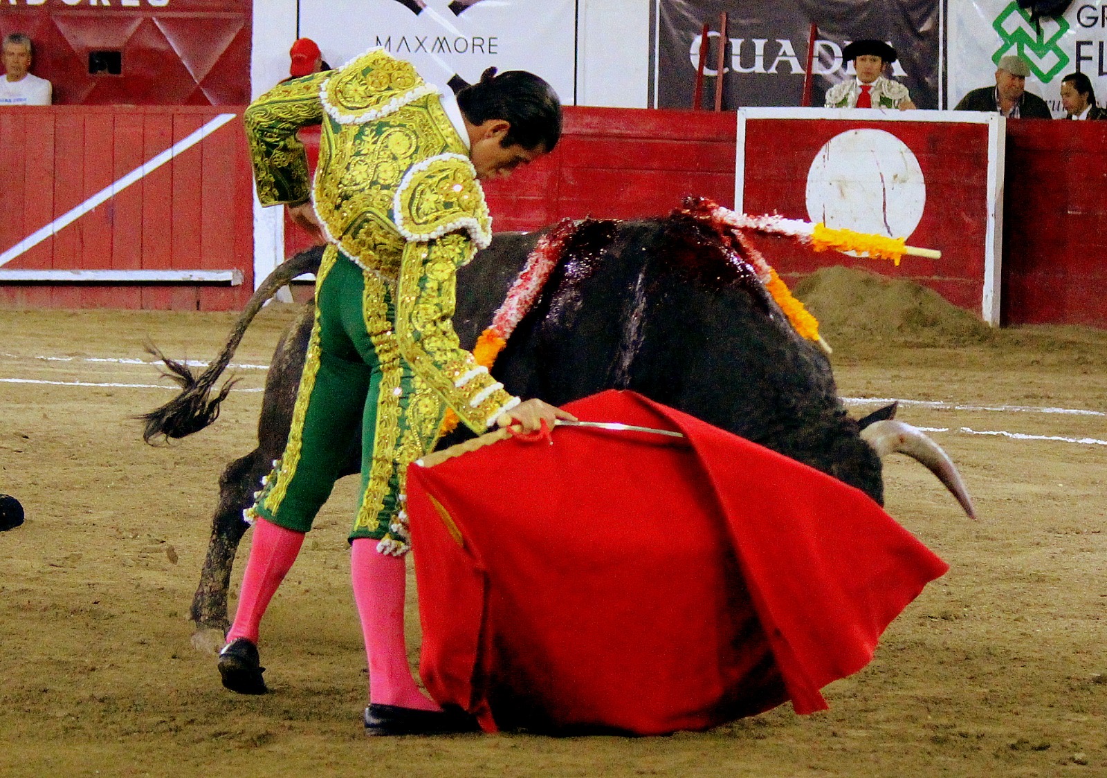El diestro Ernesto Javier Calita, cayó de pie a la afición leonesa, primero porque sin pensarlo mucho se fue a los medios y de rodillas recibió a su primer toro y luego le bordó una muy buena faena con su toreo largo largo y vertical, sin dejar a un lado sus desplantes y coreografía característica, el toro se prestó para que por ambos lados el diestro le cuajara tandas muy toreras que calaron mucho en los tendidos, lástima que cuando ya la gente sacaba sus pañuelos para pedir las orejas, después del tremendo volapié que ejecutó, el puntillero falló y levantó al astado, siguiendo luego el desconsuelo pues le tocaron 2 avisos y cuando casi se le iba vivo el toro, acertó con el descabello…Con su segundo volvió El Calita a incarse en los medios para recibirlo y dejar en claro que venía a triunfar, luego ya de pie fue hilvanando la faena, aprovechando que el toro se prestaba, quites vistosos con el capote y luego con la muleta comenzó de rodillas en cambiado por la espalda y derechazos que alborotaron la gallera, después de pie vino el toreo templado, vertical con tandas de derechazos y naturales desde allá hasta allá, generando los olés interminables, una y otra vez por ambos lados toreaba El Calita, la gente entregada, por lo que tras irse encima con la espada y volver a ejecutar el auténtico volapié, rodó el noble toro y le dieron las orejas como premio.