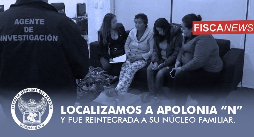 Una vez recibida la denuncia por la desaparición de Apolonia “N”, la Fiscalía de Guanajuato activó los protocolos de búsqueda, lo que permitió a la Unidad Especializada en Investigación de Personas Desaparecidas de la Fiscalía Regional “D”, localizar a la mujer en la ciudad de San Pedro, en el estado de Coahuila.