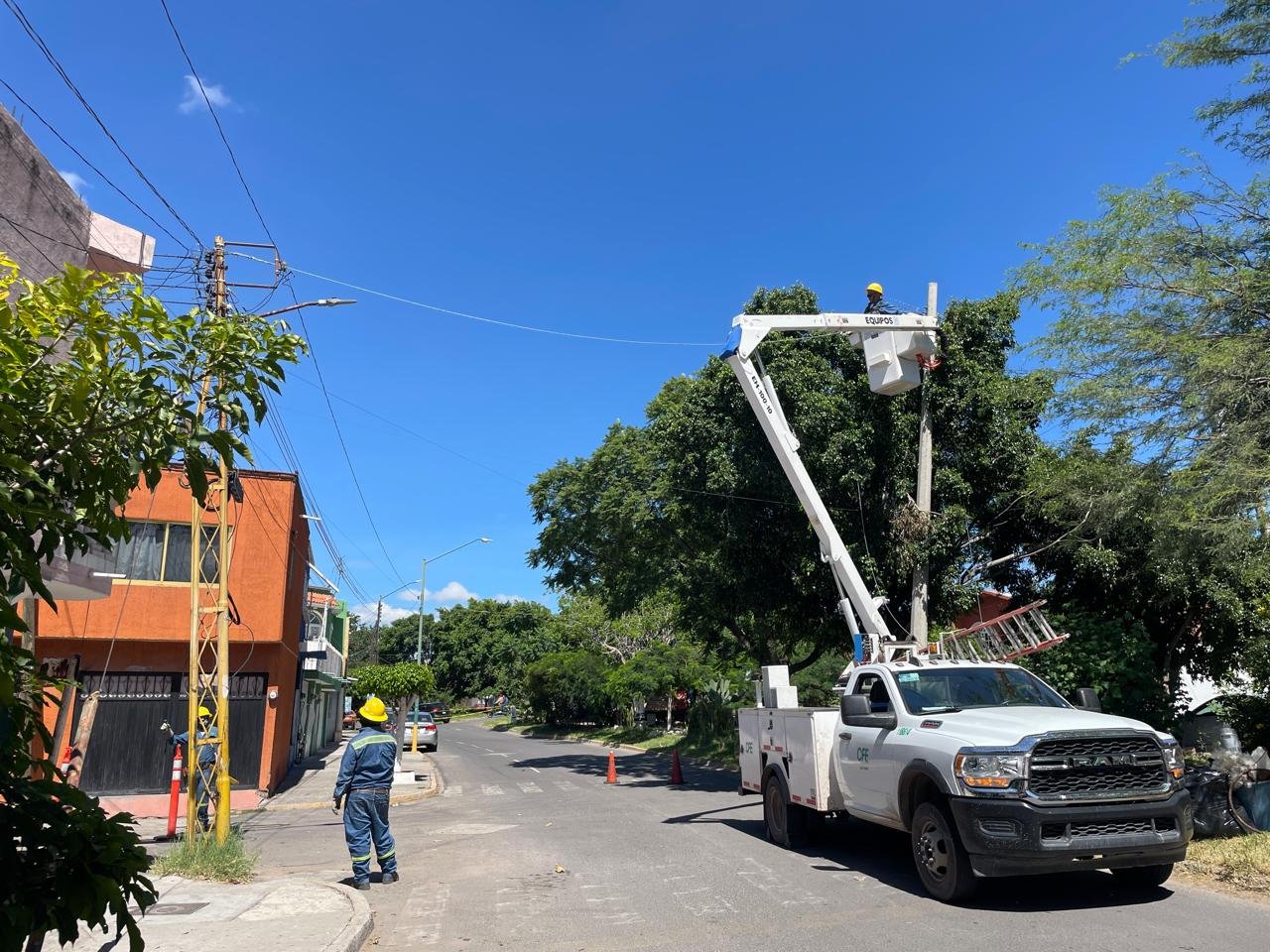 Finalmente, la CFE envió una cuadrilla de trabajadores que colocó un nuevo poste de concreto en el camellón de la calle para enderezar otro poste inclinado. Sin embargo, aunque los cables quedaron separados alrededor de 10 centímetros de la finca, el aire los sigue empujando contra el muro.