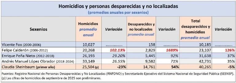 Ciudad de México, 07 de octubre del 2025. – Durante el primer año del gobierno de la presidenta Claudia Sheinbaum, los homicidios en México disminuyeron un 23%, según reportó en su conferencia matutina. Sin embargo, este descenso contrasta con el aumento significativo de desapariciones forzadas, que se incrementaron en un 18% en el mismo periodo.