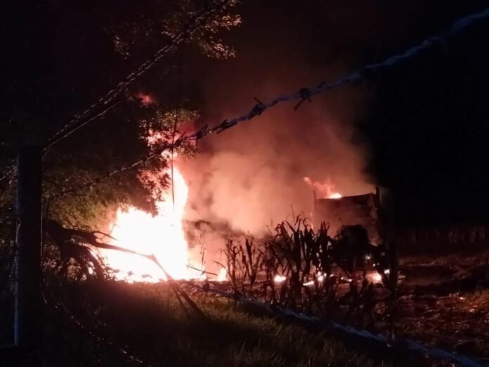 Uno de ellos sucedió a un lado del camino que comunica a las comunidades de Oteros y El Carmen, donde los lugareños escucharon dos explosiones y observaron una columna de fuego.