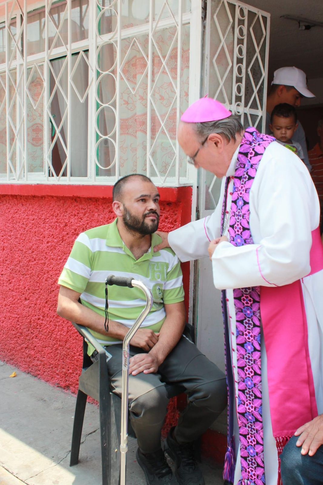 Fue en las calles de la colonia Barrio de la Salud, dentro de la Zona Centro, que el Obispo visitó a algunas familias.